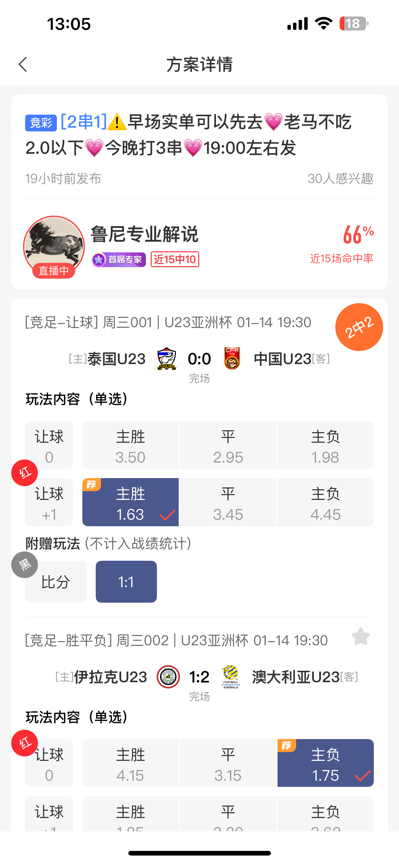 今年非洲杯真是无敌了~又是2✅2全垒打!整体主任20✅14~沙特3✅2连续两天了~非洲杯继续2✅2~亚洲杯2✅2